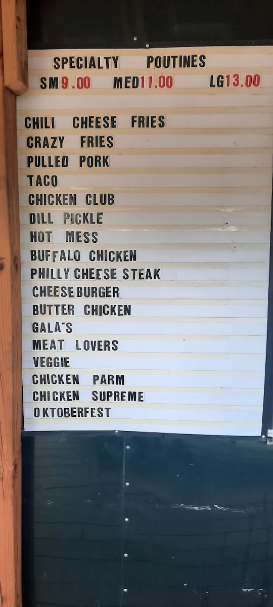 The menu at Gala's Pit Stop offers a straightforward yet satisfying selection of casual Canadian comfort food, perfect for a quick meal or a relaxed takeout experience. You’ll find classic favourites like hearty burgers and iconic poutines alongside inventive variations such as the Philly Cheese Steak Poutine and the Meat Lovers Specialty Poutine.