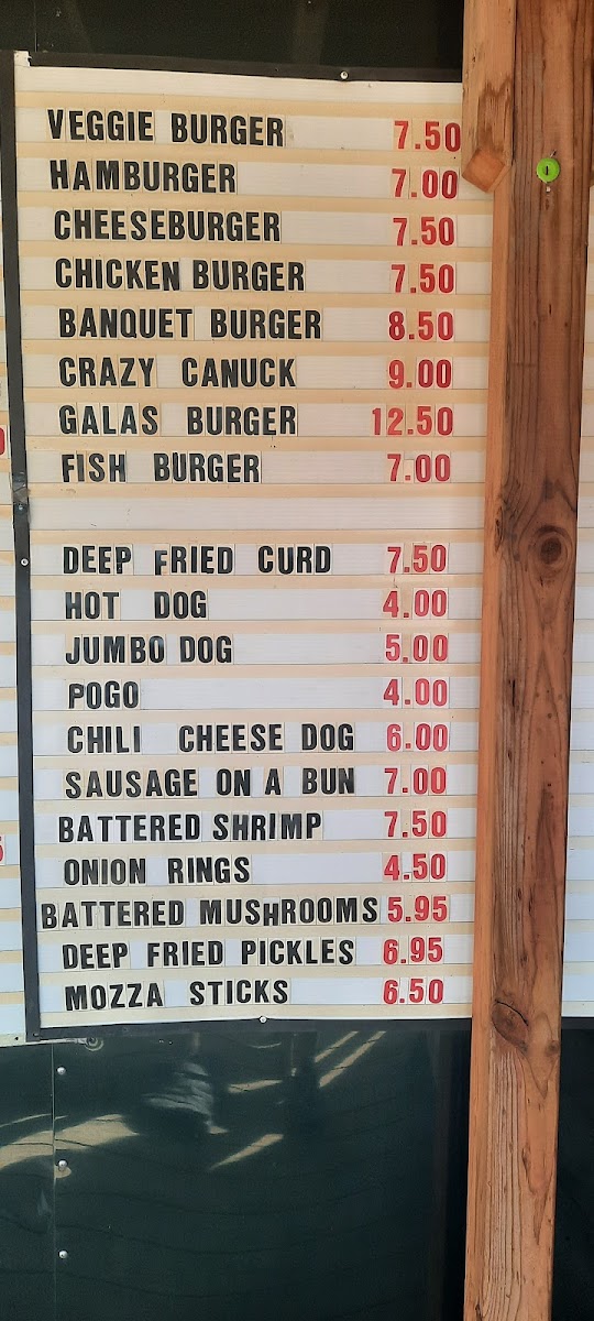 Gala's Pit Stop Menu